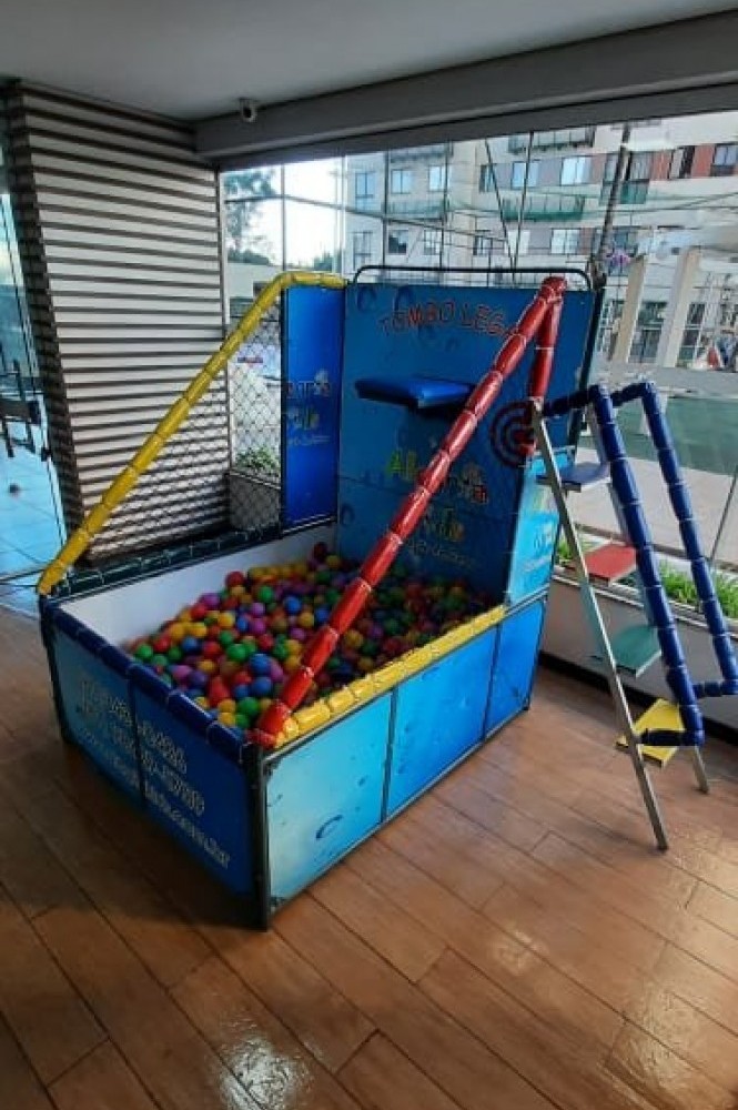 Quando acionado a criança sente a adrenalina de cair nas bolinhas é muito divertido. Mas tudo isso com total segurança.
