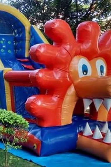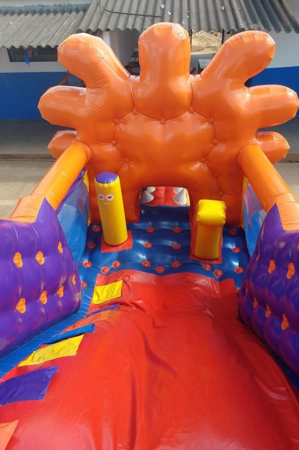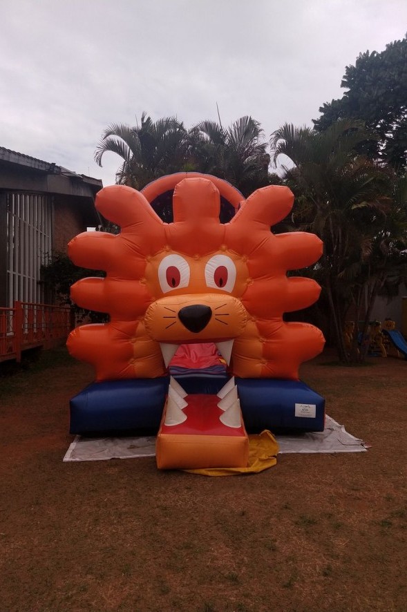 Nosso tobogã leão 3 em 1 é um brinquedo bastante chamativo e divertido, dentro dele além do escorrega tem um cavalinho e um João Bobo para a criançada se divertir!